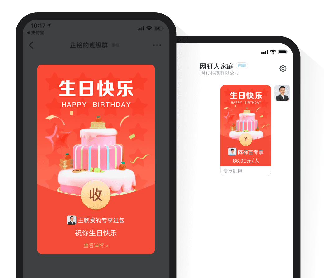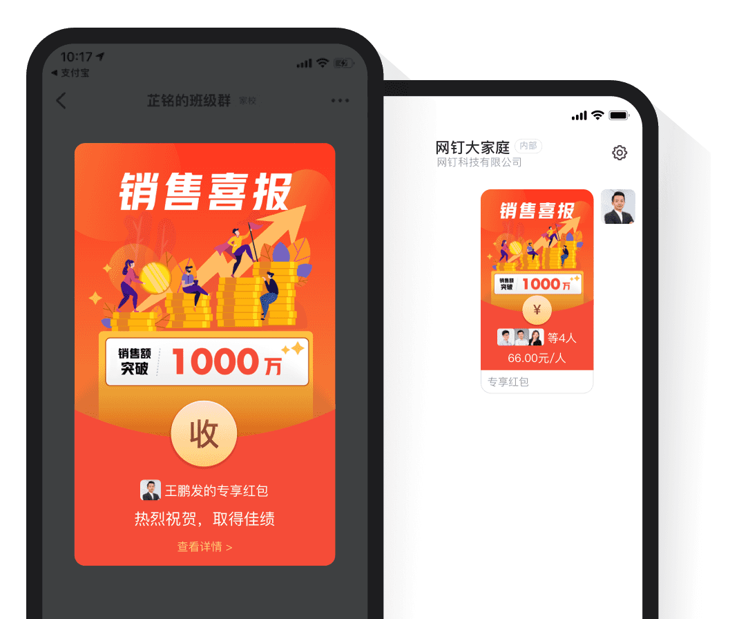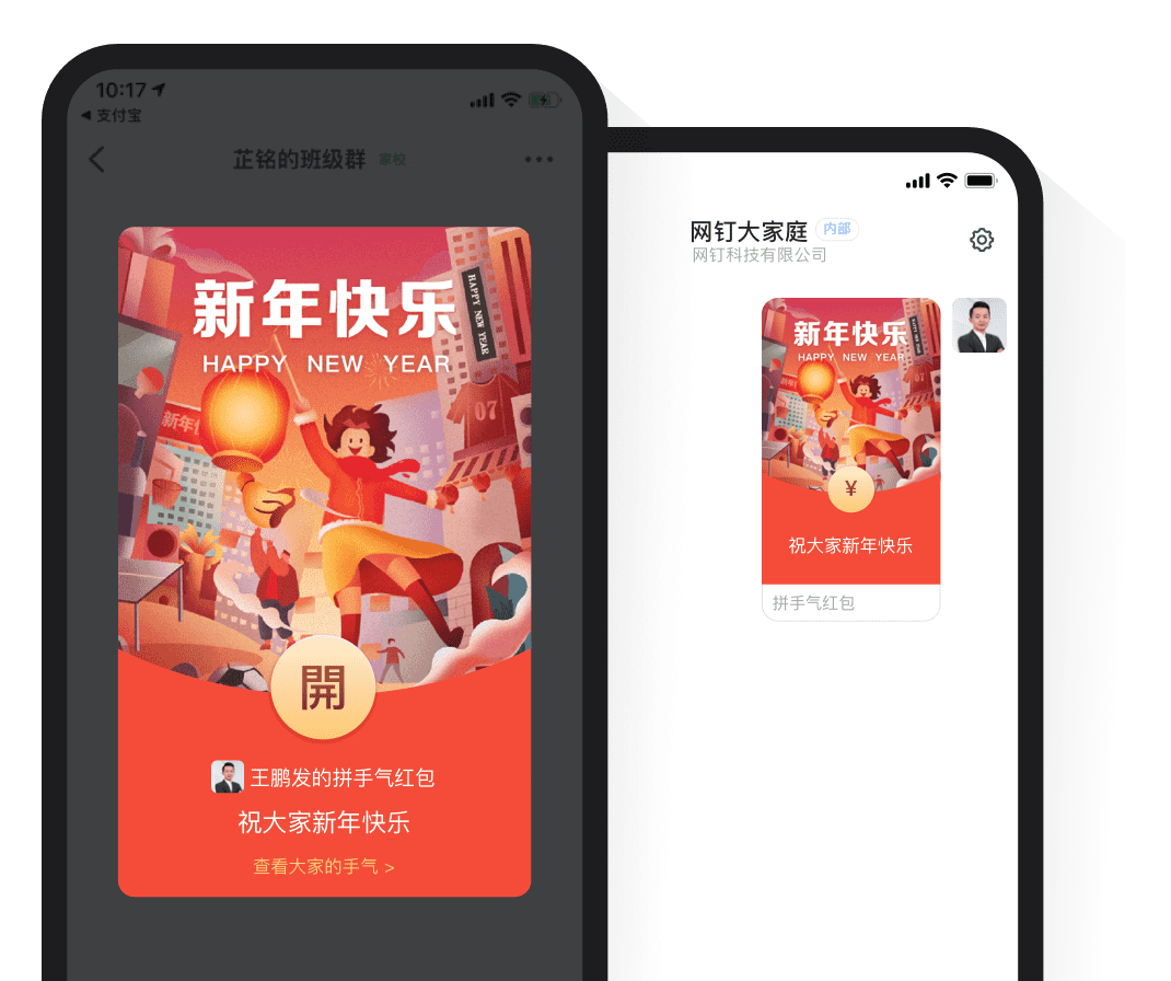 紅包主題 提供多種場景和多種款式的紅包樣式,用戶輕松編輯紅包主題圖片,紅包更具個性,員工關懷和激勵更有儀式感 注冊釘釘
