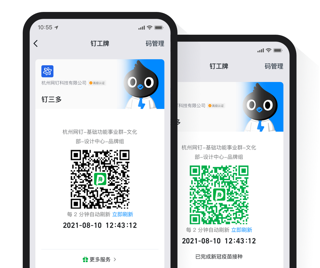 組織內的身份碼,可融合健康碼信息,結合門禁系統后可實現門禁一碼通行。